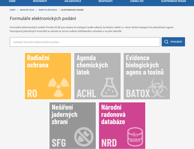 Vstup do Portálu SÚJB - přihlášení, autorizace, podání